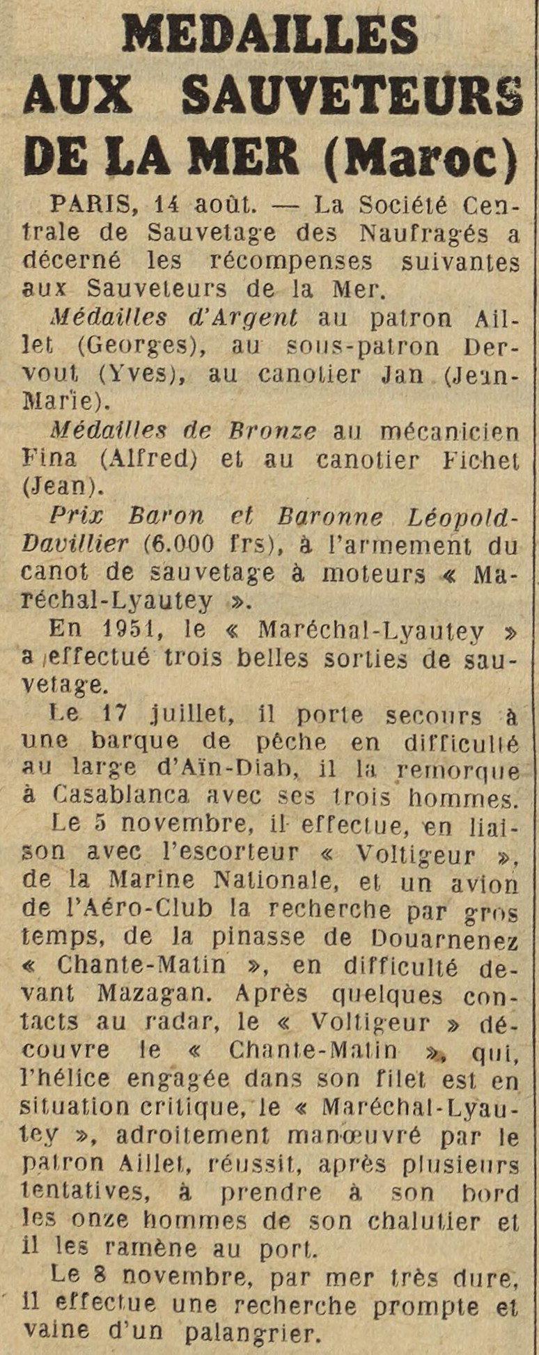 canot de sauvetage "Maréchal-Lyautey" (Casablanca, Maroc), escorteur "Voltigeur"