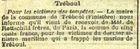Journal La Dépêche du Finistère Date 29 juin 1899 Bateau(x) ARC DE TRIOMPHE - DZ338 Chaloupe - 1898-1899 Mots-clés Solidarité, Souscription, Naufrage, Victimes, Rottschild Lieu(x) Tréboul Contributeur(s) Michel Le Berre Image