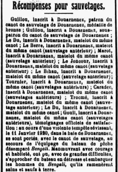 patron Guillou, matelots Le Du, Le Berre, Marot, Le Joncour, Le Bihan, Tournier, Caradec, Trocmé, Gouil