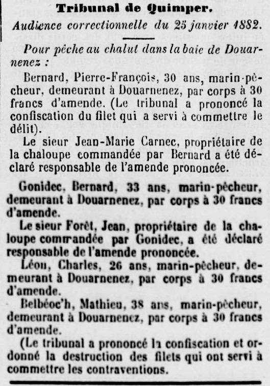 Tribunal de Quimper - Audience correctionnelle du 25 janvier 1883