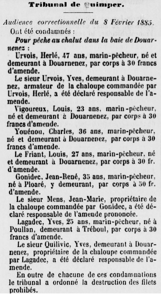 Herlé Urvois, Yves Urvois, Louis Vigouroux, Charles Youinou, Louis Le Friant, Jean-René Gonidec, Jean-Marie Mens, Yves Lagadec, Yves Quilivic