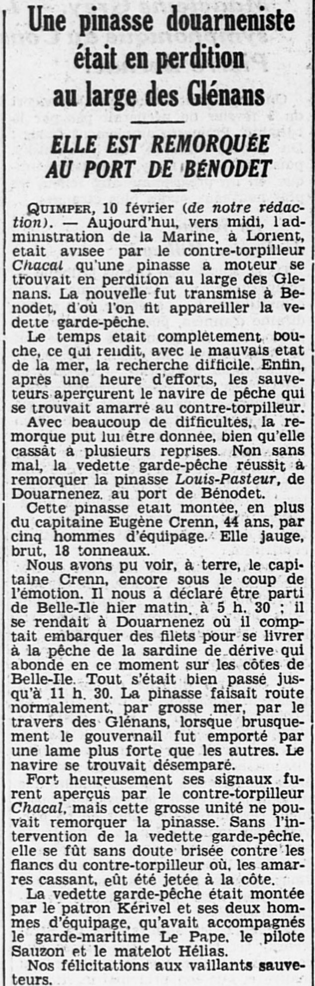 patron Eugène Crenn, patron Kérivel, garde-maritime Le Pape, pilote Sauzon, matelot Hélias